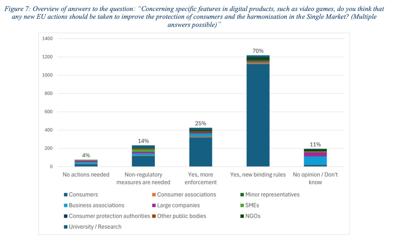 Résultats de la consultation publique de la Commission européenne montrant un fort soutien à la mise en place de nouvelles réglementations sur certaines fonctionnalités des jeux vidéo